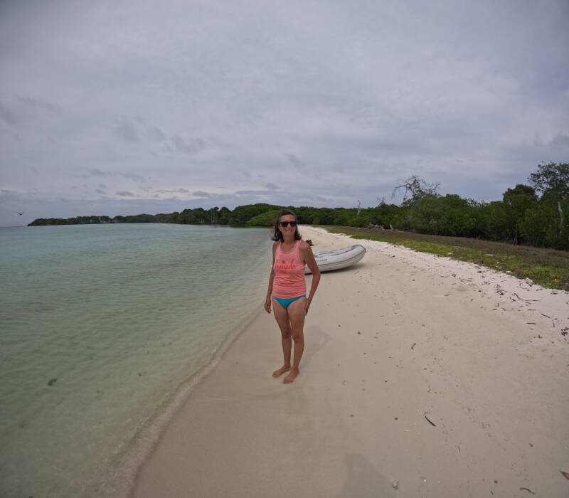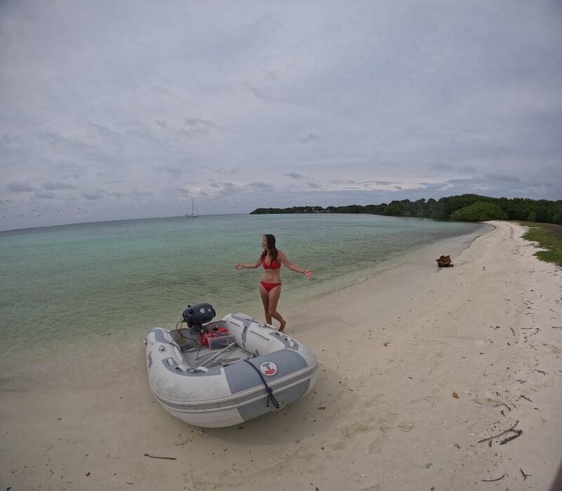 Na 28 uur varen en 165 mijl afgelegd te hebben, met een gemiddelde snelheid van 6 knopen, bereiken we eindelijk de Aves Barlovento in de vroege ochtend. De opkomende zon, laag in de hemel recht voor ons, maakt het moeilijk om de koraalblokken te detecteren die plotseling uit de diepte kunnen opduiken. Voorzichtig varen we verder tot we onze ankerplaats bereiken. En dan: pure betovering. Niets op aarde lijkt dit paradijselijke tafereel te kunnen evenaren. Het sprankelende turkooisblauwe water, de stralend witte stranden, en de vogels die in grote aantallen boven de mangrove zweven, creëren een magisch decor. Sommigen vliegen nieuwsgierig naar onze boot toe, alsof ze willen vragen: "Wat komen jullie hier doen?"