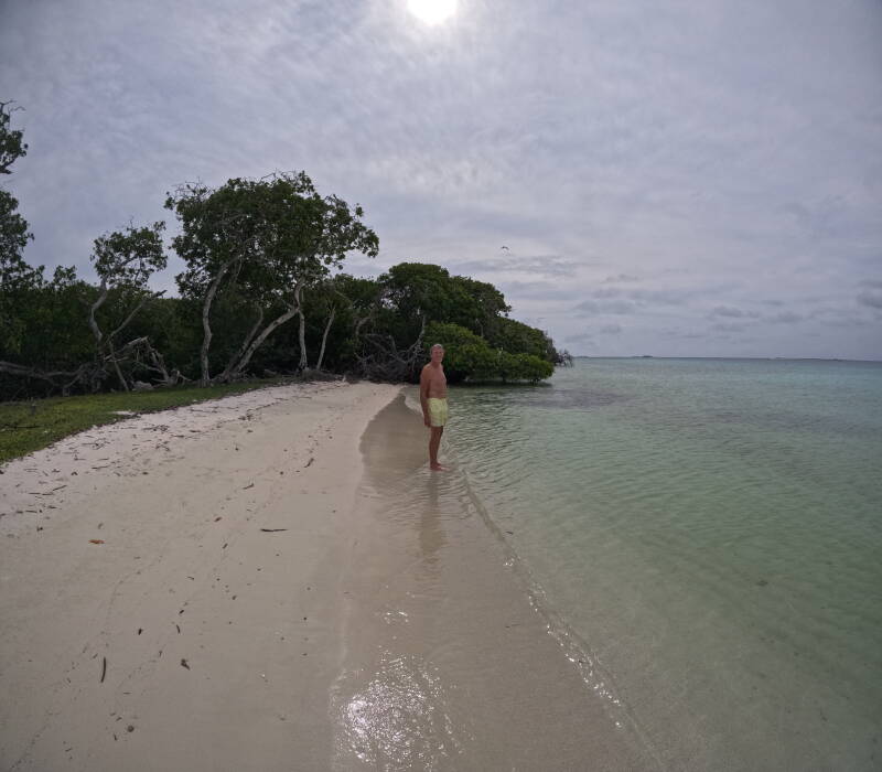 Après 28 heures de navigation et 165 milles parcourus, à une moyenne de 6 nœuds, nous atteignons enfin les Aves Barlovento aux premières lueurs du jour. Le soleil, encore bas devant nous, rend difficile la détection des patates de corail qui surgissent brusquement des profondeurs. Avec prudence, nous progressons jusqu’à atteindre notre point d’ancrage. Et là, le spectacle nous saisit. Rien sur terre ne semble pouvoir rivaliser avec ce tableau paradisiaque : l’eau d’un turquoise éclatant, des plages immaculées d’un blanc étincelant, et des oiseaux qui virevoltent au-dessus de la mangrove comme des messagers silencieux. Certains s’approchent même de notre bateau, curieux, comme pour nous demander : « Que venez-vous faire ici ? »