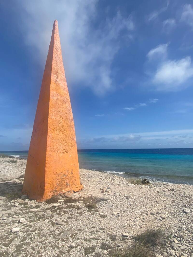 Deze oranje obelisk aan zee diende als oriëntatiepunt voor kapiteins: hij gaf aan waar een bepaald type zout geladen moest worden. Elke kleur stond voor een specifieke laadzone.