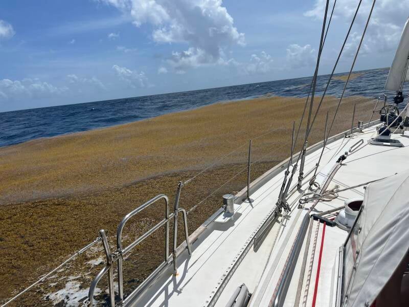 Normaal drijven deze algen veel noordelijker, maar de laatste jaren overspoelen ze de Caraïben en onze vaarroute. Waarschijnlijk opnieuw een gevolg van de klimaatverandering. Onze arme aarde lijdt… en de oceaan fluistert het ons toe.