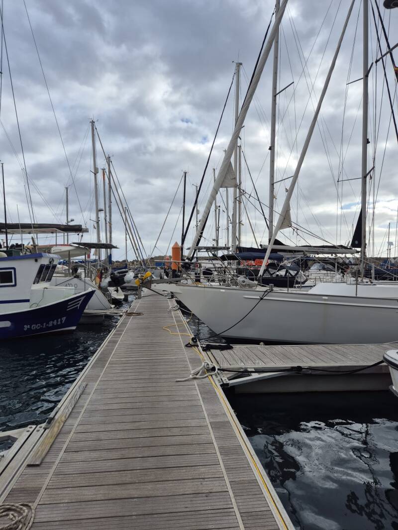 Toen ons duidelijk werd dat de zuidenwind nog zou aanzwellen, besloten we de haven te verlaten en beschutting te zoeken in Gran Tarajal, een marina verder naar het zuiden. Daar vonden we een veilige ligplaats in de marina zelf, goed beschermd tegen de elementen, en we genoten van de nabijheid van het charmante stadje. We wachtten er enkele dagen, hopend op het juiste moment om de touwen los te gooien. Uiteindelijk verlieten we Gran Tarajal bij zonsondergang en voeren we naar Gran Canaria, gedragen door een constante wind. De tocht van 14 uur bracht ons bij daglicht naar Puerto de Mogán, een perfect getimede en voldoening gevende aankomst.